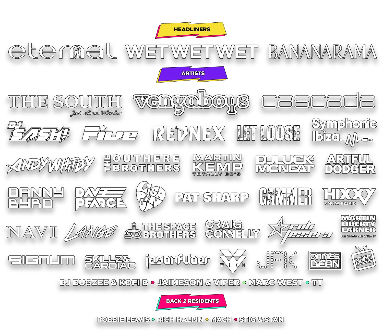 The 2024 The 2024 lineup contains 42 acts. ; Eternal, Wet Wet Wet and Bananarama top the bill as headliners headline the festival.