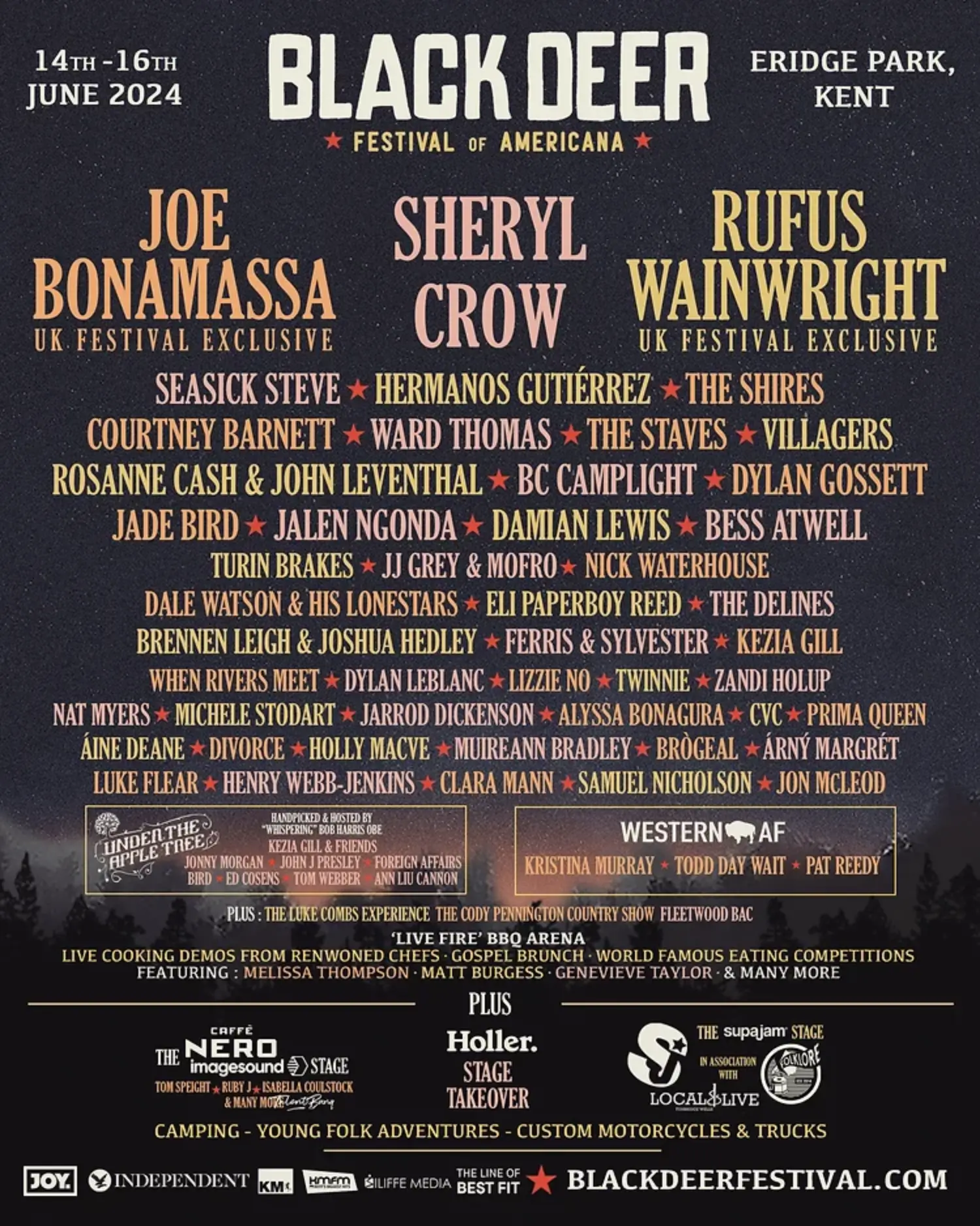 The 2024 lineup contains 60 acts. Joe Bonamassa, Sheryl Crow and Rufus Wainwright headline the festival.