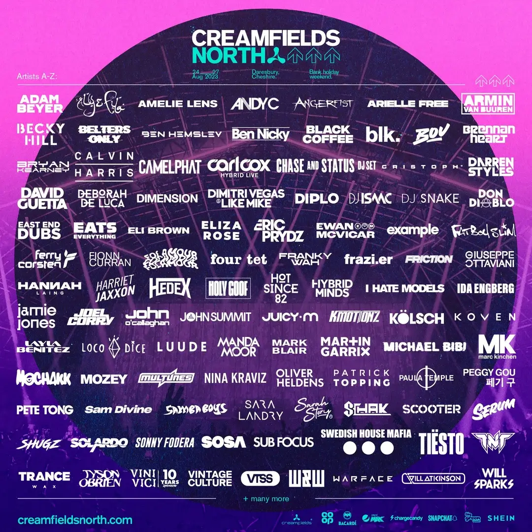 Creamfields is 1 of 20 music festivals in the North West of England. The festival’s full address is: Daresbury Estate, Halton, Cheshire, WA4 4AR.