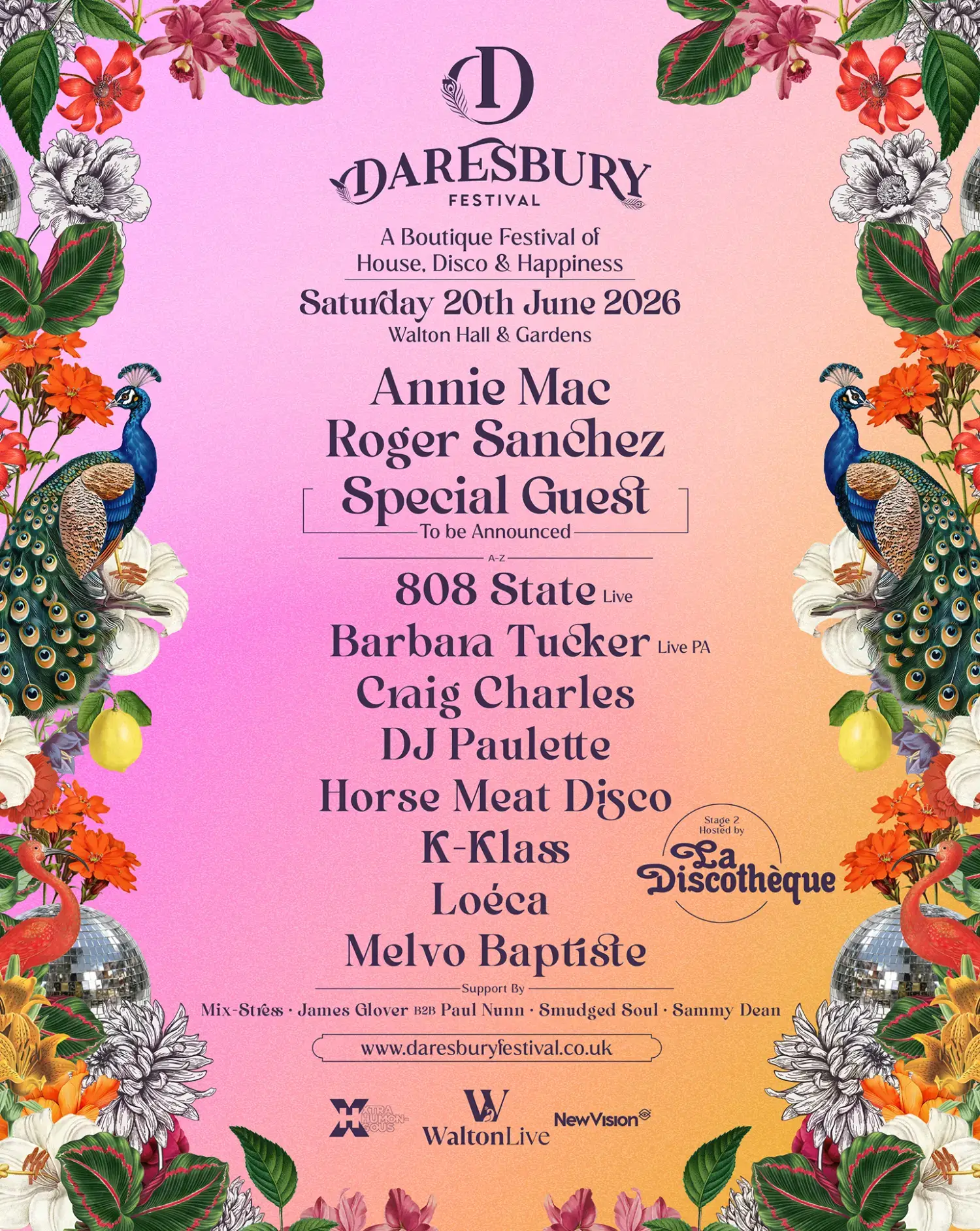 The 2026 lineup contains 16 acts. Annie Mac and Roger Sanchez headline the festival.