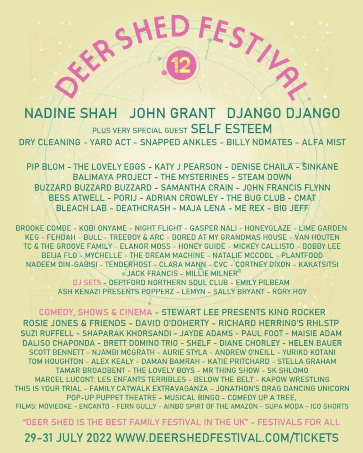 The 2022 The 2022 lineup contains 113 acts. ; Nadine Shah, John Grant, Django Django and Self Esteem top the bill as headliners headline the festival.