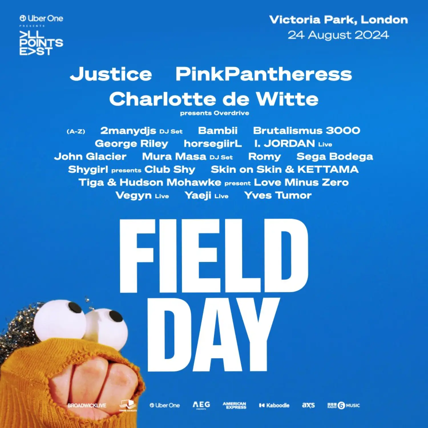 Field Day is 1 of 14 music festivals in Greater London, England. The festival’s full address is: Victoria Park, London, E3 5SN.