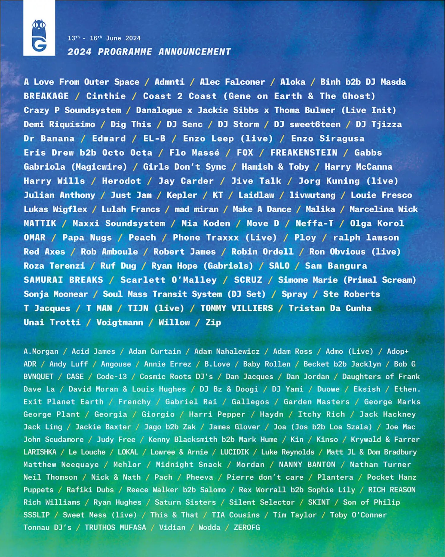 The 2024 The 2024 lineup contains 149 acts. ; Gottwood does not typically publicise headline acts. headline the festival.