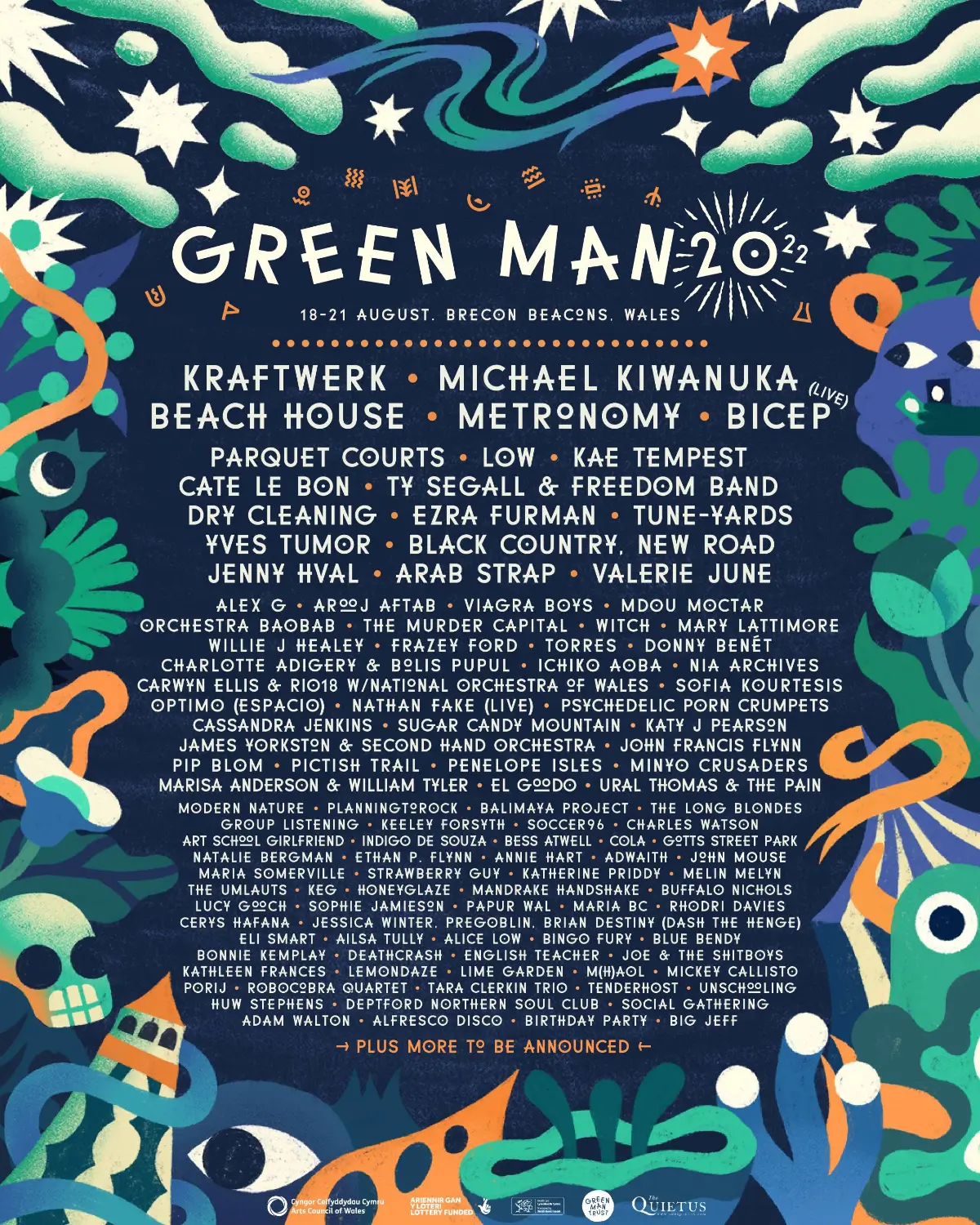 The 2022 lineup contains 105 acts. Kraftwerk, Michael Kiwanuka, Beach House, Metronomy and BICEP headline the festival.