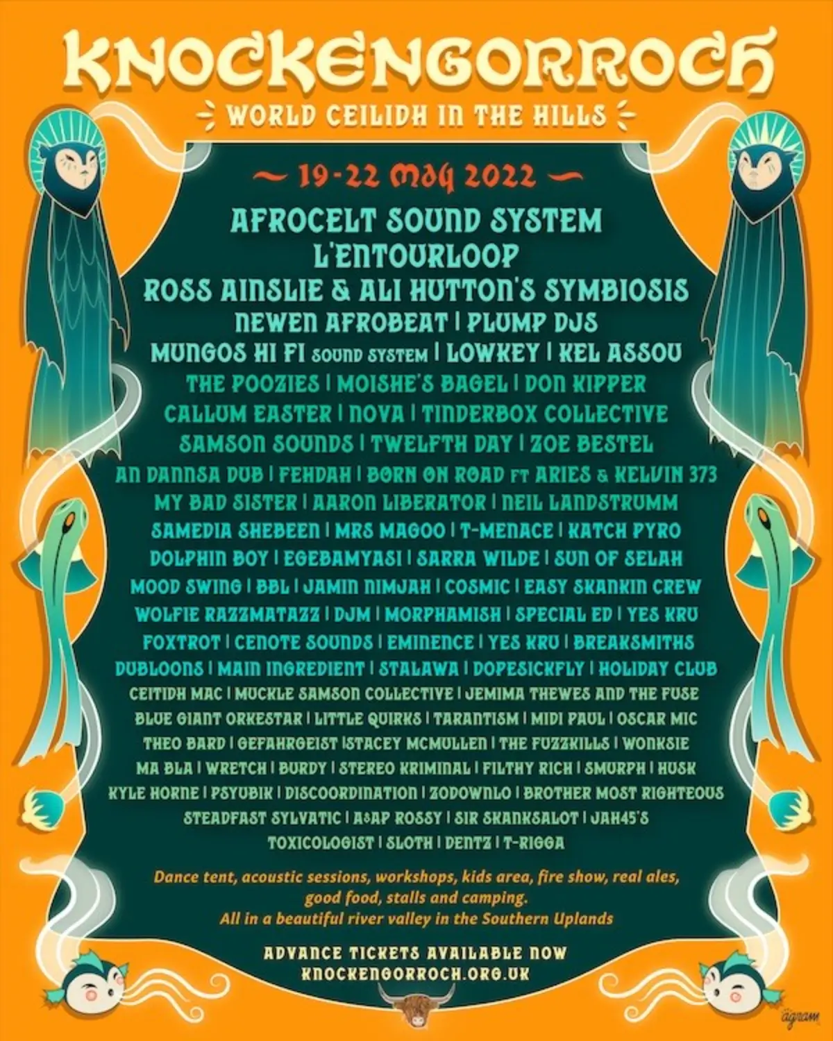 The 2022 lineup contains 84 acts. Afro Celt Sound System and L'Entourloop headline the festival.