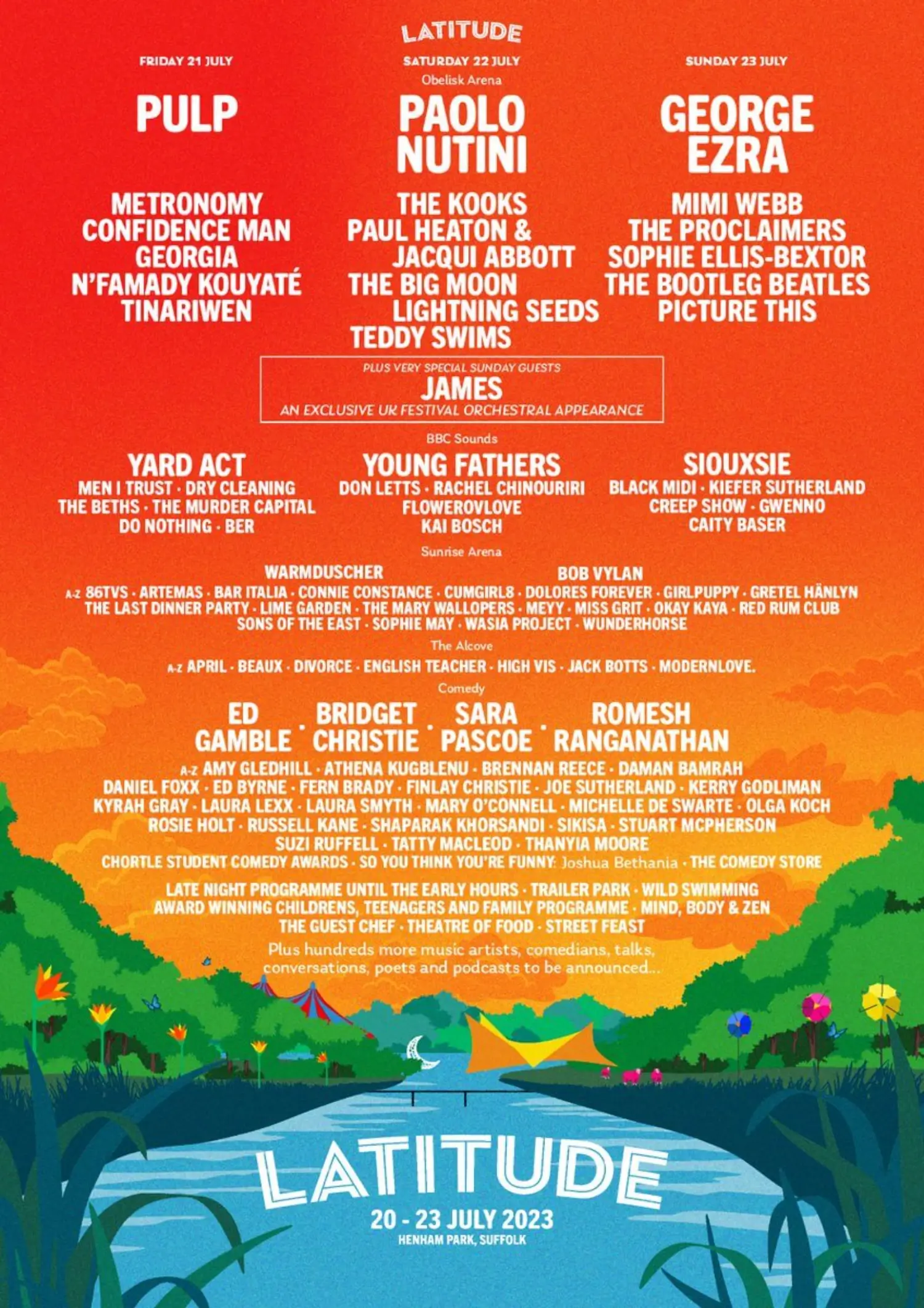 This image is courtesy of latitude festival, showing you which acts are scheduled for 2023.