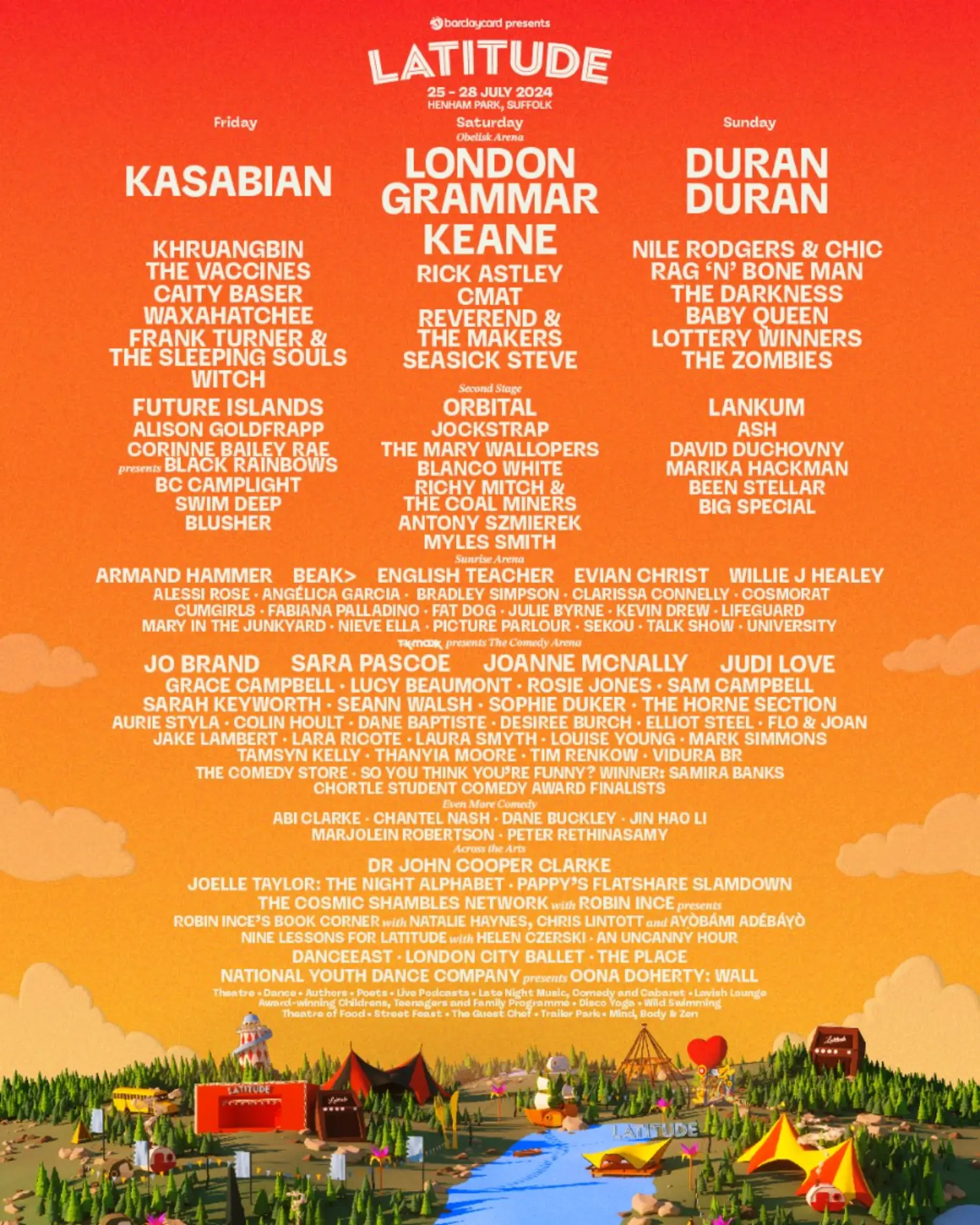 The 2024 The 2024 lineup contains 75 acts. ; Kasabian, London Grammar and Duran Duran top the bill as headliners headline the festival.