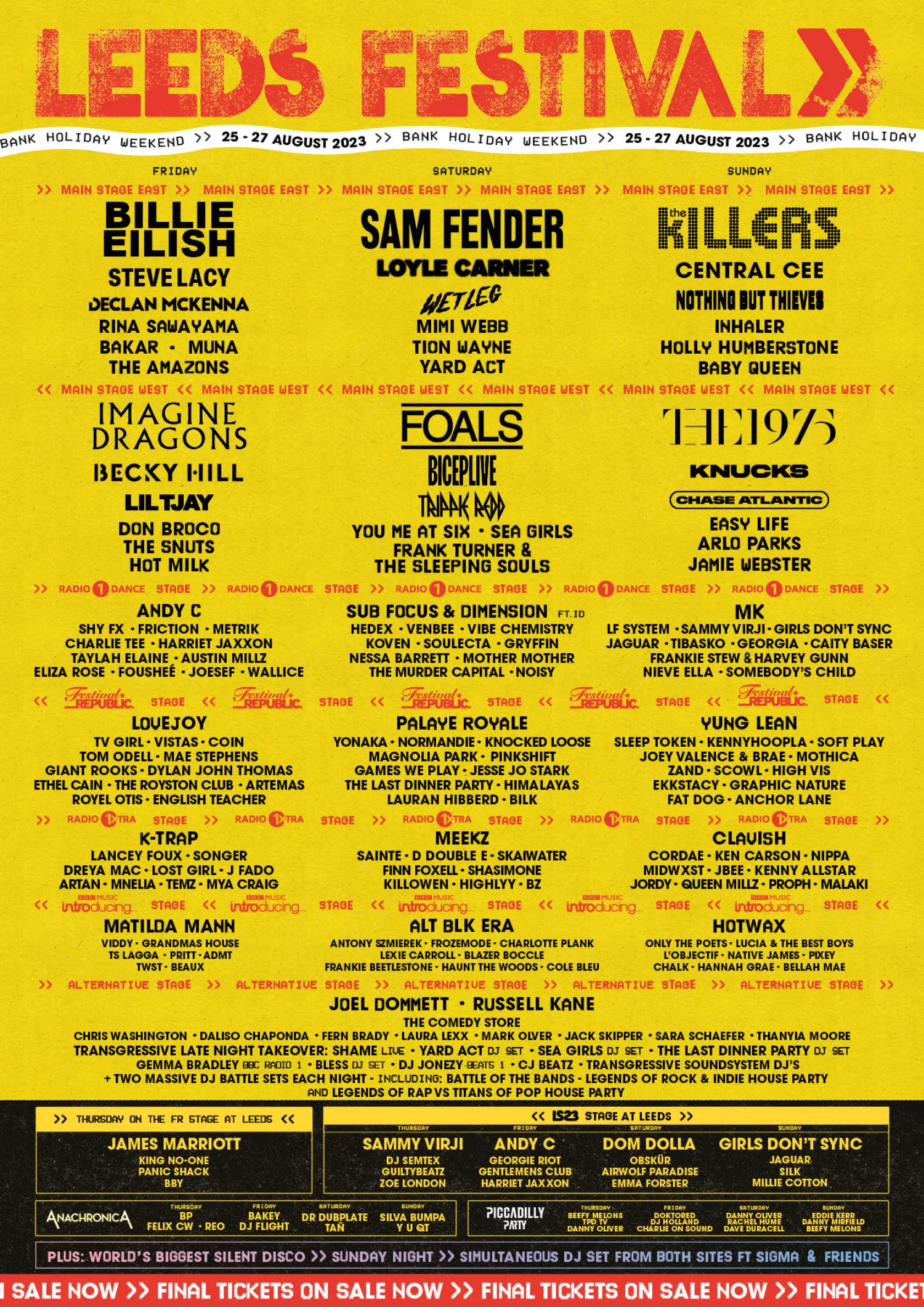 The 2023 lineup contains 190 acts. Sam Fender, Foals and The 1975 headline the festival.