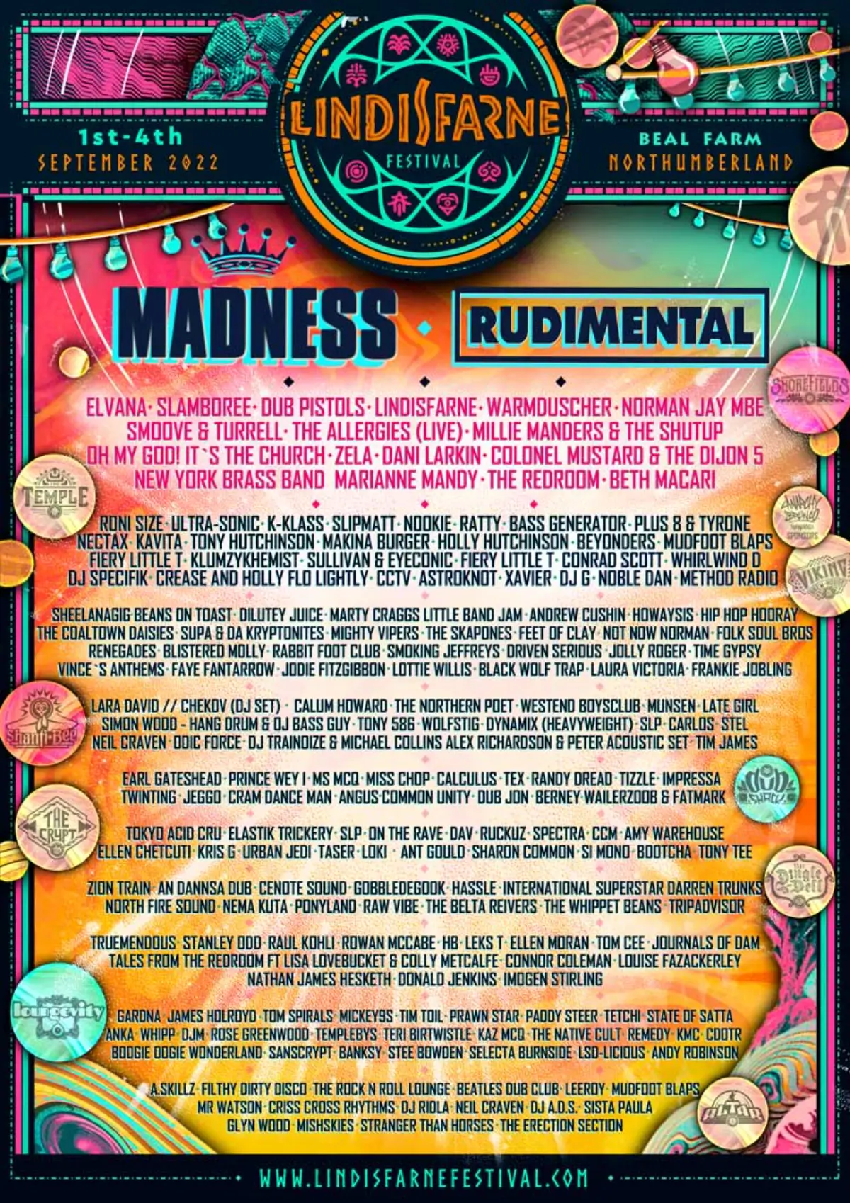 The 2022 lineup contains 204 acts. Madness and Rudimental headline the festival.