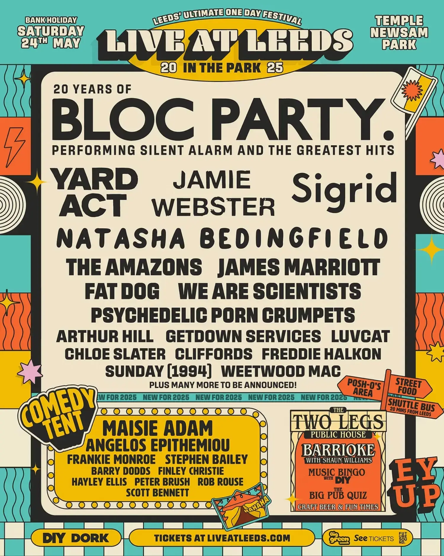 The 2025 lineup contains 27 acts. ; Bloc Party top the bill as headliners headline the festival.