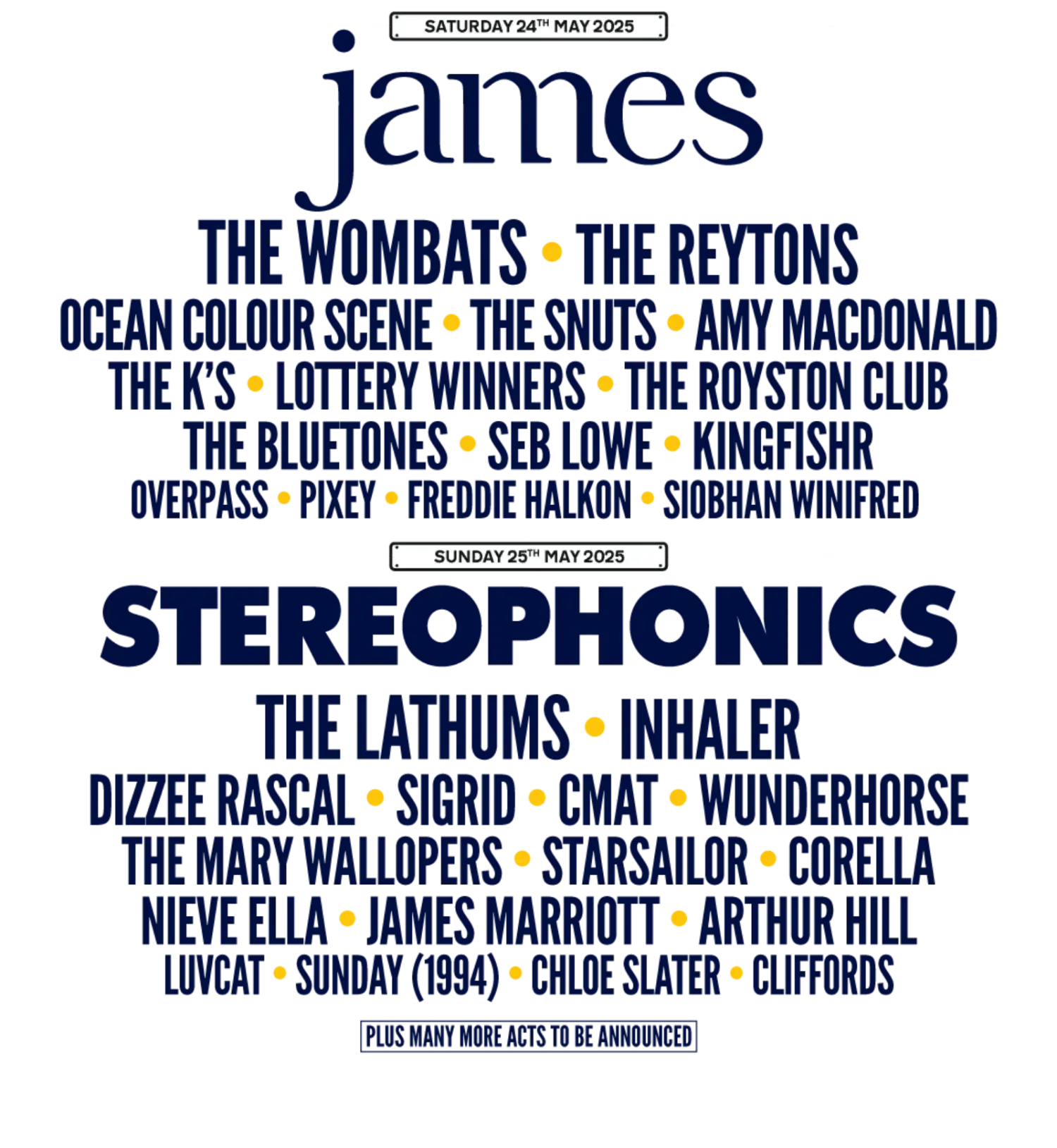 The 2025 lineup contains 31 acts. ; James and Stereophonics top the bill as headliners headline the festival.