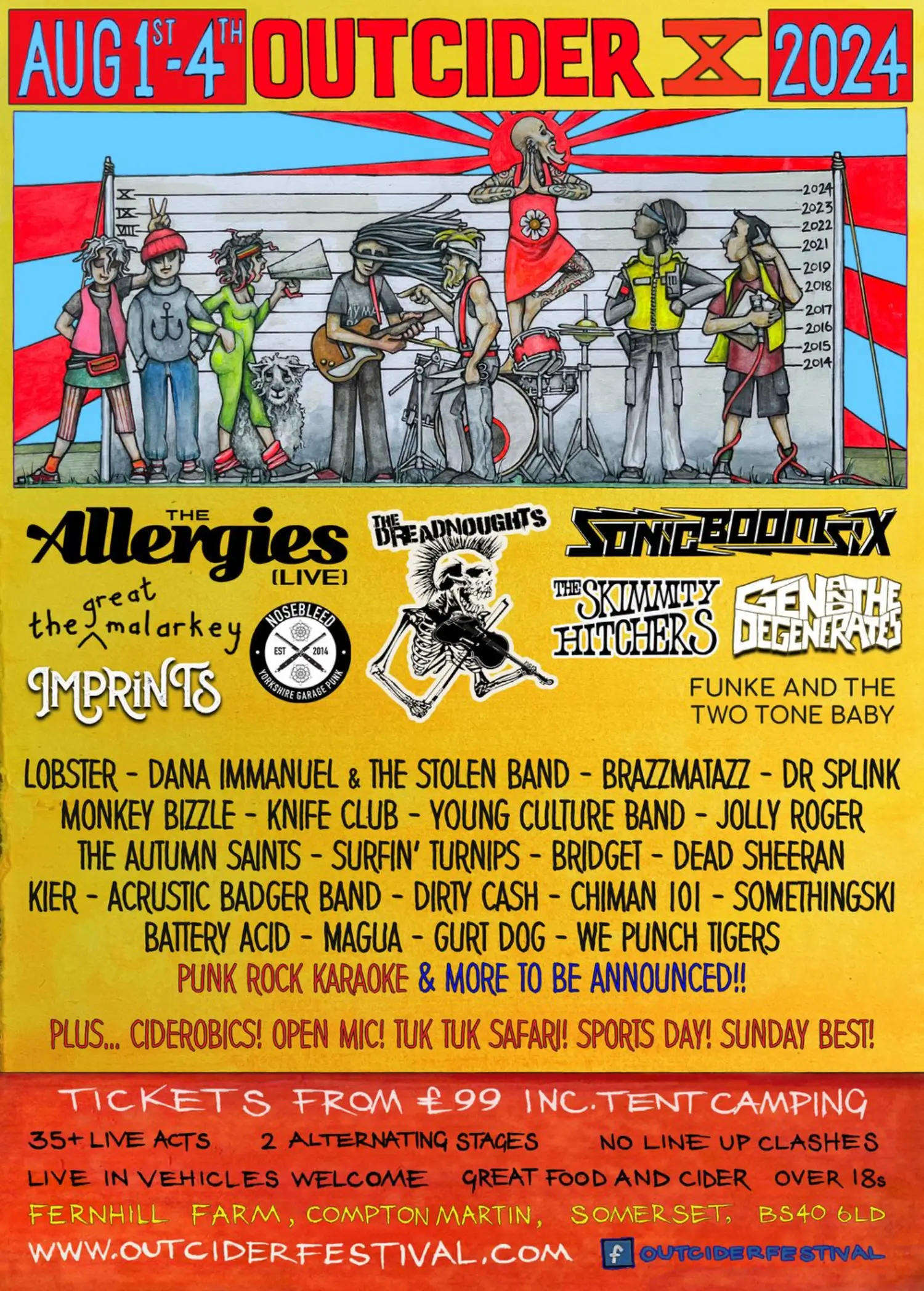 The 2024 lineup contains 30 acts. The Allergies, The Dreadnoughts, Sonic Boom Six, The Great Malarkey, Imprints, nosebleed, The Skimmity Hitchers, Gene and The Degenerates and Funke and the Two Tone Baby headline the festival.