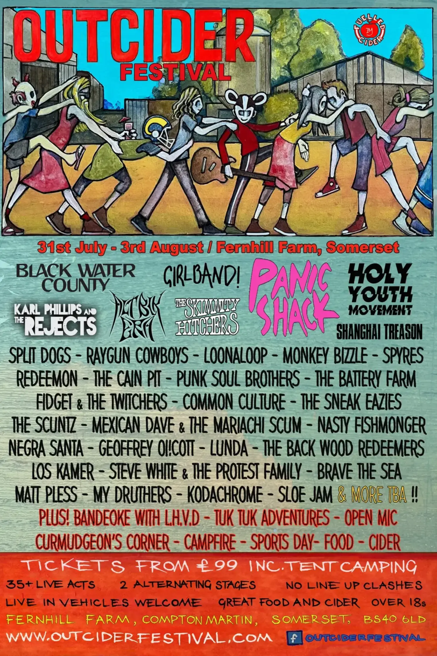OutCider is 1 of 39 music festivals in the South West of England. The festival’s full address is: Fernhill Farm, Compton Martin, BS40 6LD.