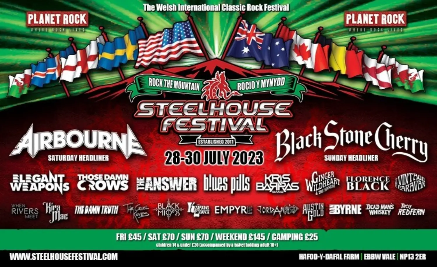 Steelhouse is 1 of 9 music festivals in the South of Wales. The festival’s full address is: Ebbw Vale, NP13 2ER.