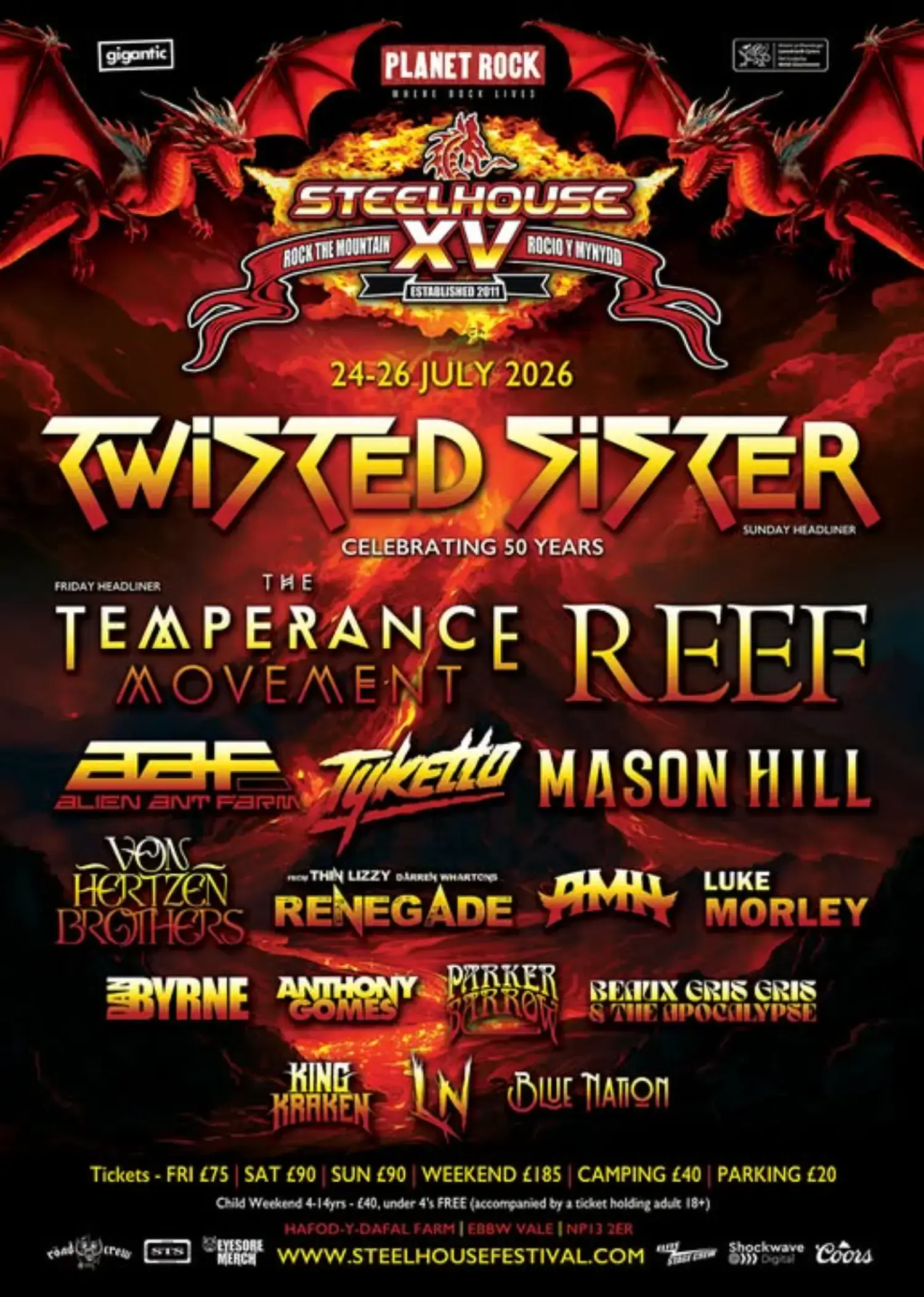 The 2026 lineup contains 18 acts. Twisted Sister, The Temperance Movement and Reef headline the festival.