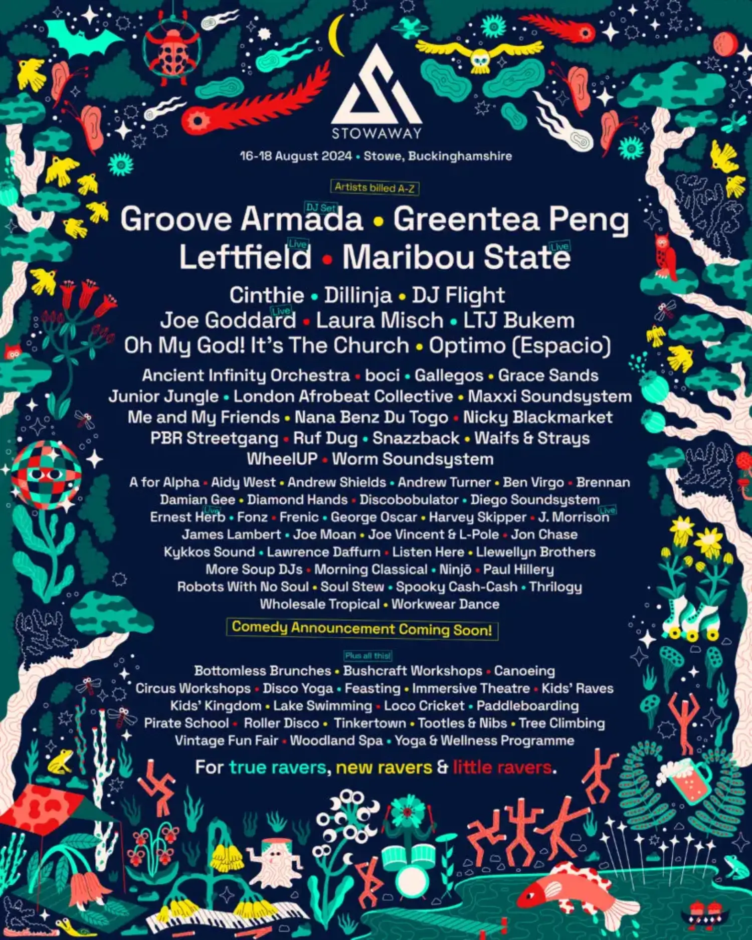 The 2024 lineup contains 61 acts. Groove Armada, Greentea Peng, Leftfield and Maribou State headline the festival.