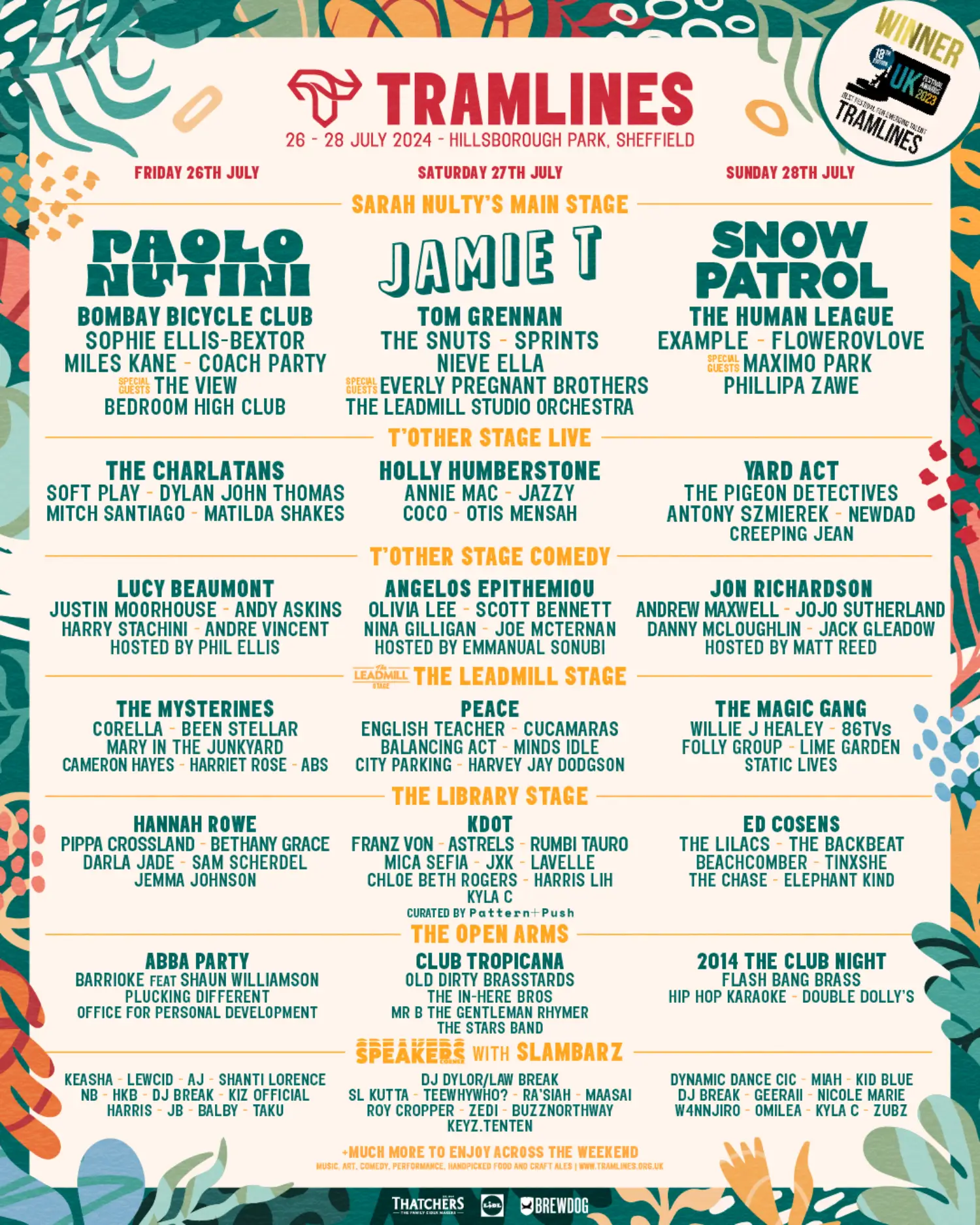 The 2024 lineup contains 131 acts. Paolo Nutini, Jamie T and Snow Patrol headline the festival.