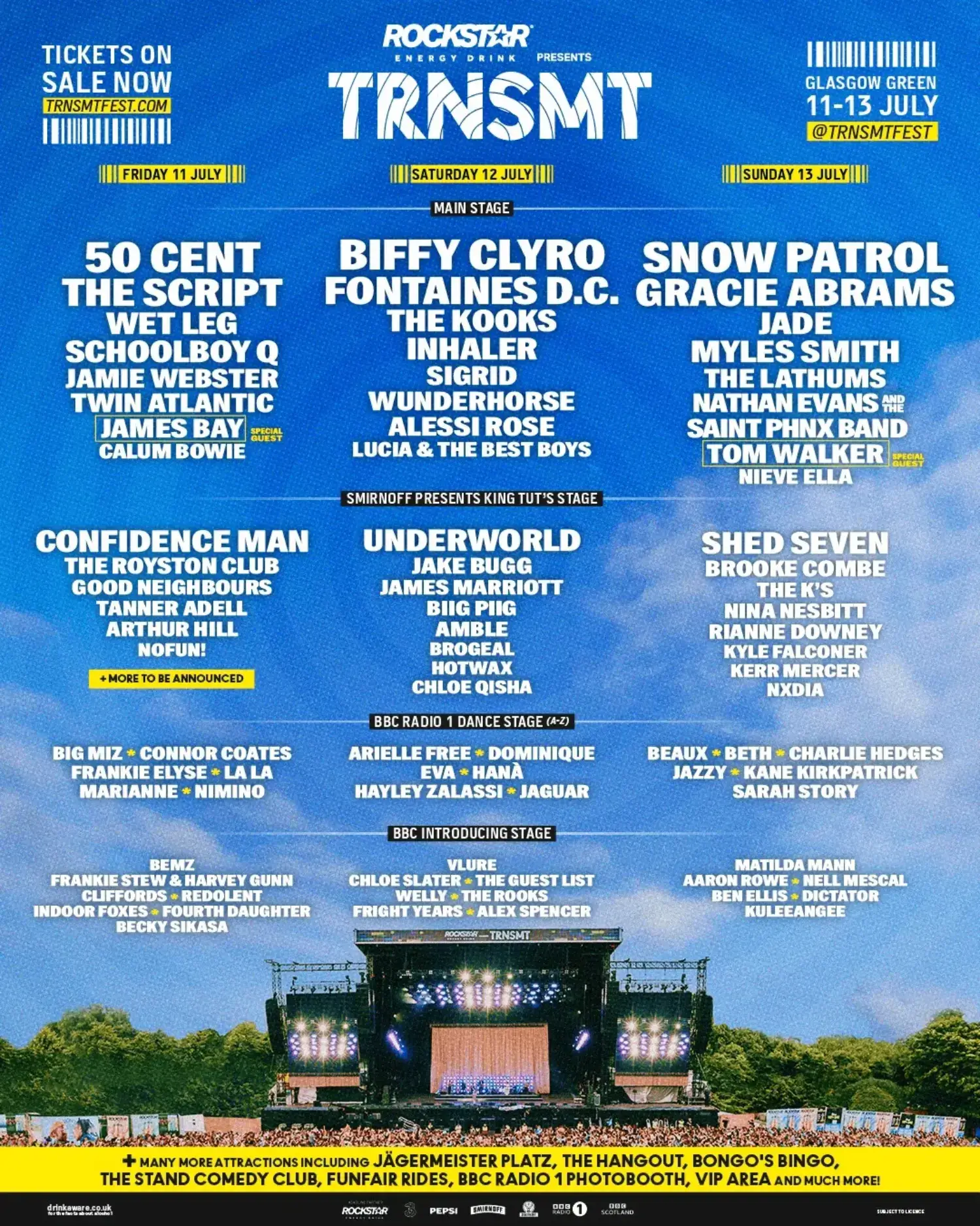 The 2025 lineup contains 84 acts. 50 Cent, Biffy Clyro and Snow Patrol headline the festival.
