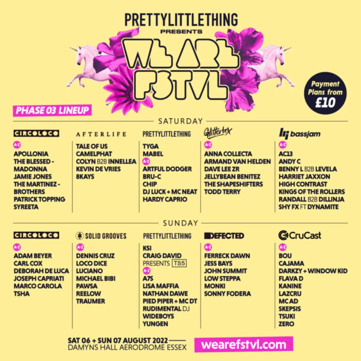 The 2022 lineup contains 73 acts. Apollonia, Tale Of Us, CamelPhat, Tyga, Mabel, Anna Collecta, Armand Van Helden, AC13, Andy C and Adam Beyer headline the festival.