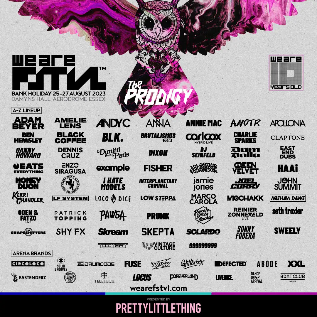 This image is courtesy of We Are Fstvl festival, showing you which acts are scheduled for 2023.