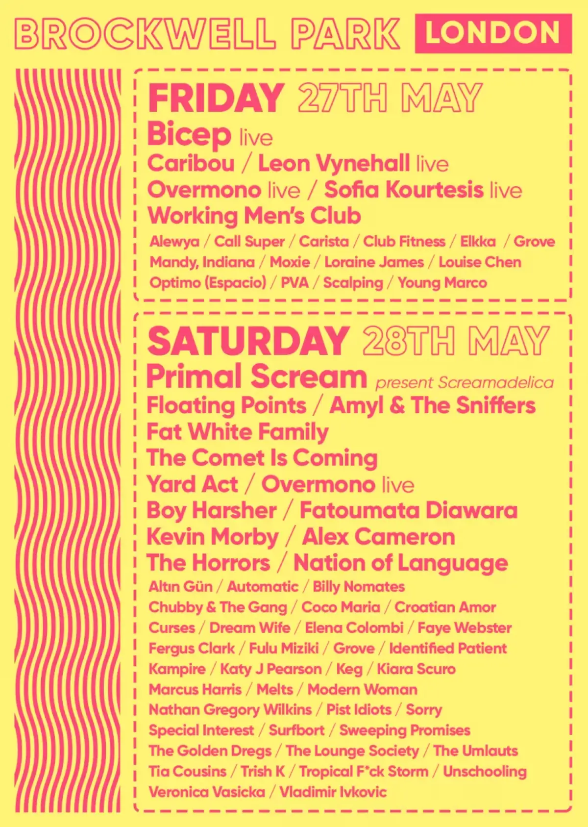 The 2022 lineup contains 66 acts. BICEP, Primal Scream, Floating Points, Fat White Family, The Comet Is Coming, The Horrors and Nation of Language headline the festival.