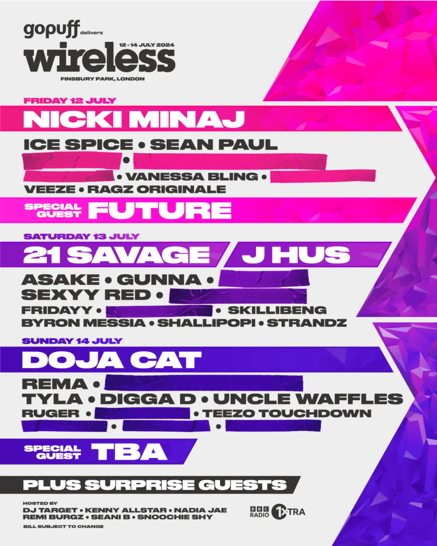 This image is courtesy of Wireless festival, showing you which acts are scheduled for 2024.
