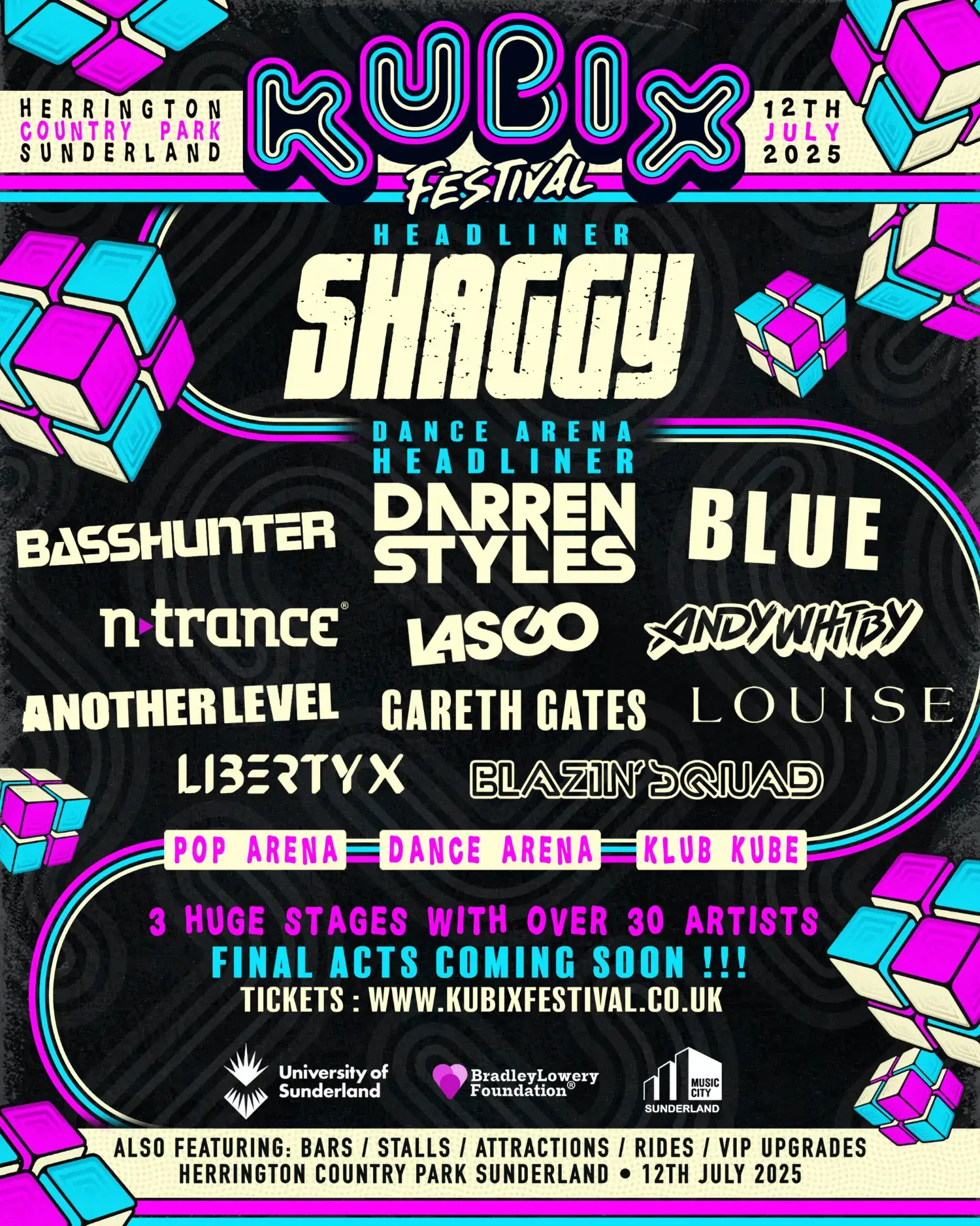 The 2025 lineup contains 11 acts. ; Shaggy, Darren Styles and Blue top the bill as headliners headline the festival.